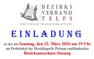- Marschmusikbewertung in Telfs: allg. Infos (Anmeldung, Fähnriche, Jury-Gespräch, Urkunden, Bewertungsbögen), Marschstrecke, Vorbereitung (Probendidaktik, Stabführercoaching, Kapellencoaching)